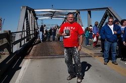 In October 2010, the new bridge was dedicated. People came from miles around to say goodbye to the old iron bridge over Marsh Island and take a piece of the old bridge with them. Soon the old bridge will be nothing but a memory.